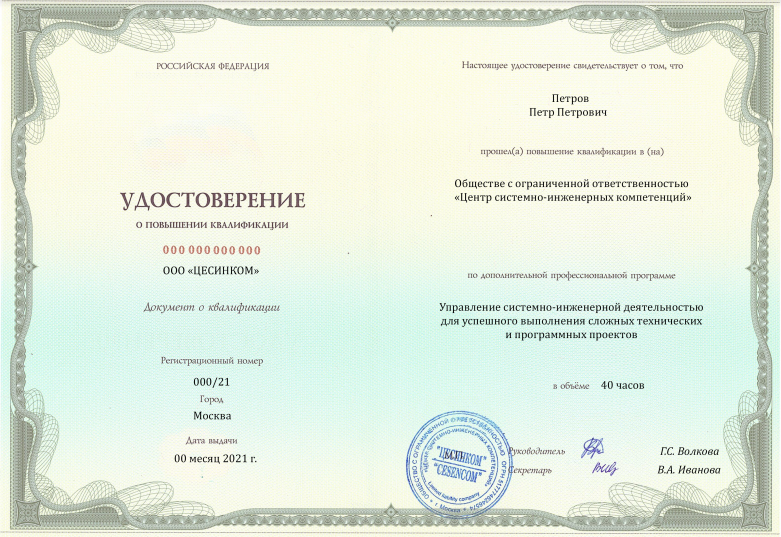 • сертификация руководителей проектов